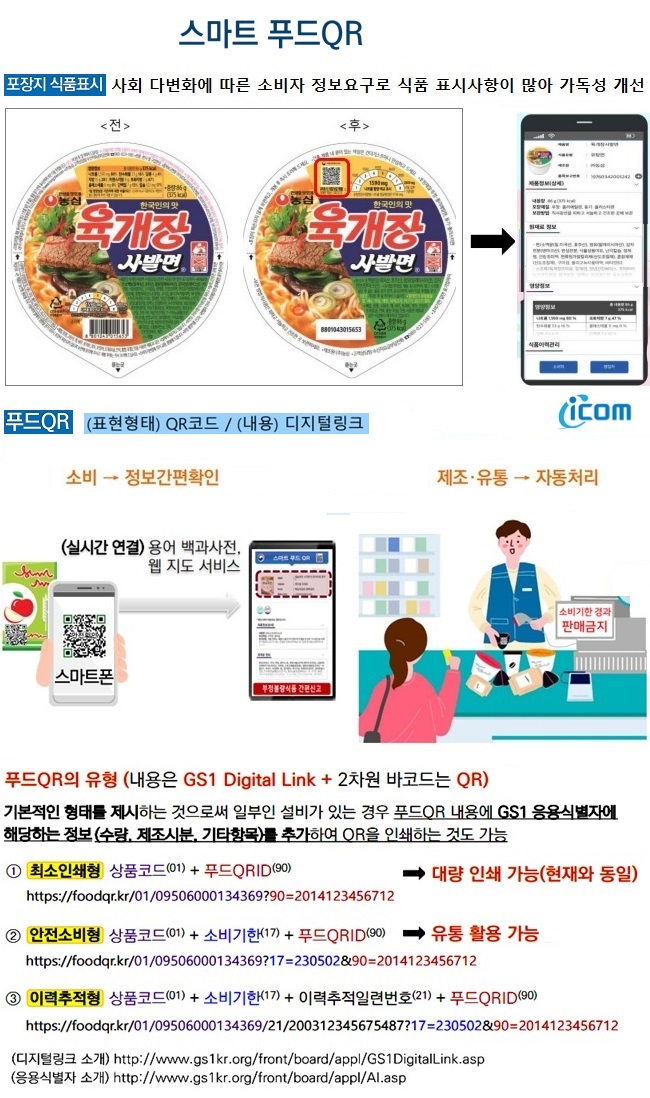 * GS1ÄÚµå ±â¹ÝÀÇ µðÁöÅиµÅ© Çü½Ä QRÄÚµå ǪµåQR´Â Á¤º¸ ¿¬°á¼º ¹× ó¸® ÀÚµ¿È¸¦ ±¸ÇöÇϱâ À§ÇÑ µðÁöÅÐ Á¤º¸ Ç¥ÁØÈ, ±¹¹Î°ú ½Äǰ¾÷ü°¡ ǪµåQRÀ» Ȱ¿ë ½Äǰ ¾ÈÀüÁ¤º¸ È®ÀÎ, ½º¸¶Æ® Á¤º¸¼ºñ½º·Î ÀÌ·ÂÃßÀû Ȱ¼ºÈ ¹× ÇàÁ¤Á¤º¸ µðÁöÅÐÈ.