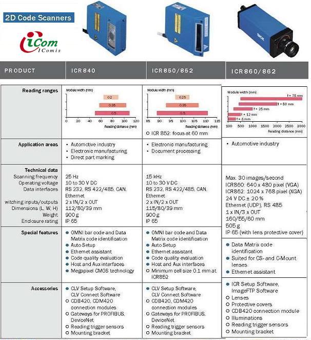Sick 2D Barcode Reader ½ÃÅ© 2D ¸®´õ : ICR 840 ICR 850 ICR 852 ICR 860 ICR 862