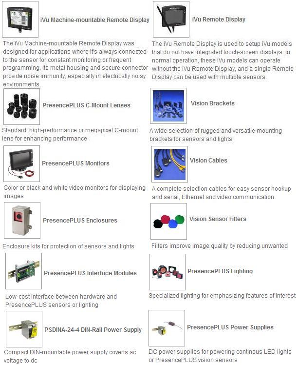 Customize the PresencePLUS for your application with light, lenses, enclosures, cable, filters and other accessories.
