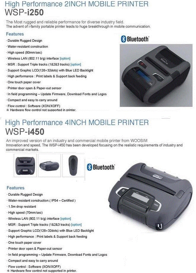 :: Mobile Printer Portable Wireless Bluetooth ÇÁ¸°ÅÍ : WSP-I250,WSP-I450